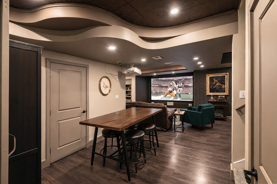 Luxury Basement: Speakeasy bar, theater, game room, & recording booth