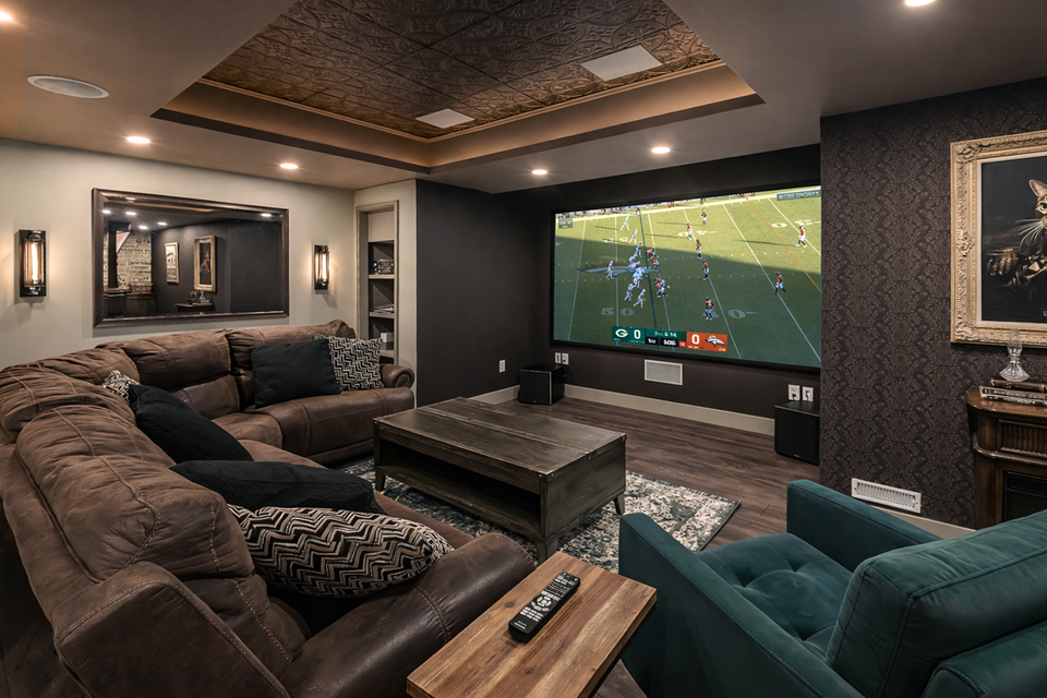Luxury Basement: Speakeasy bar, theater, game room, & recording booth